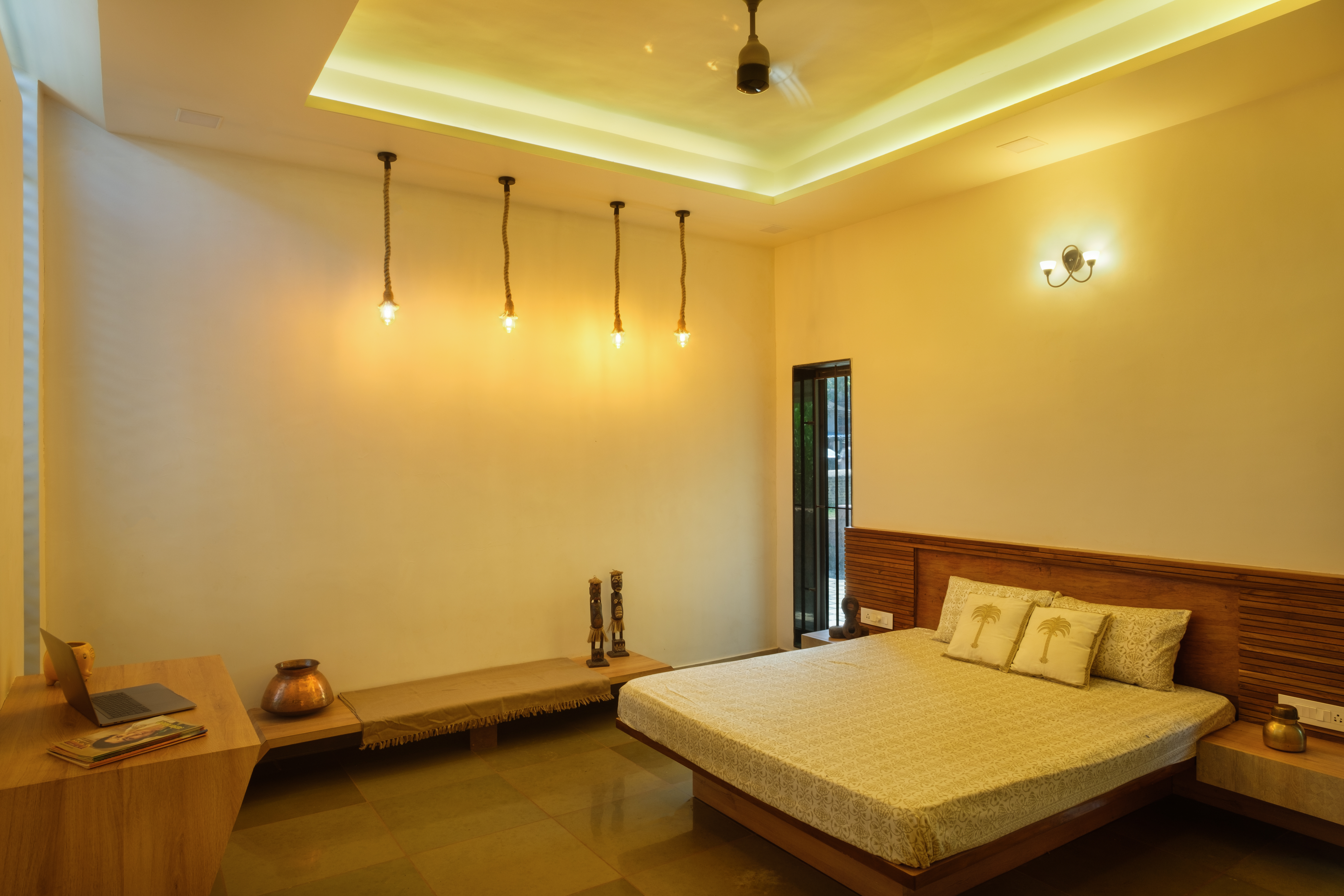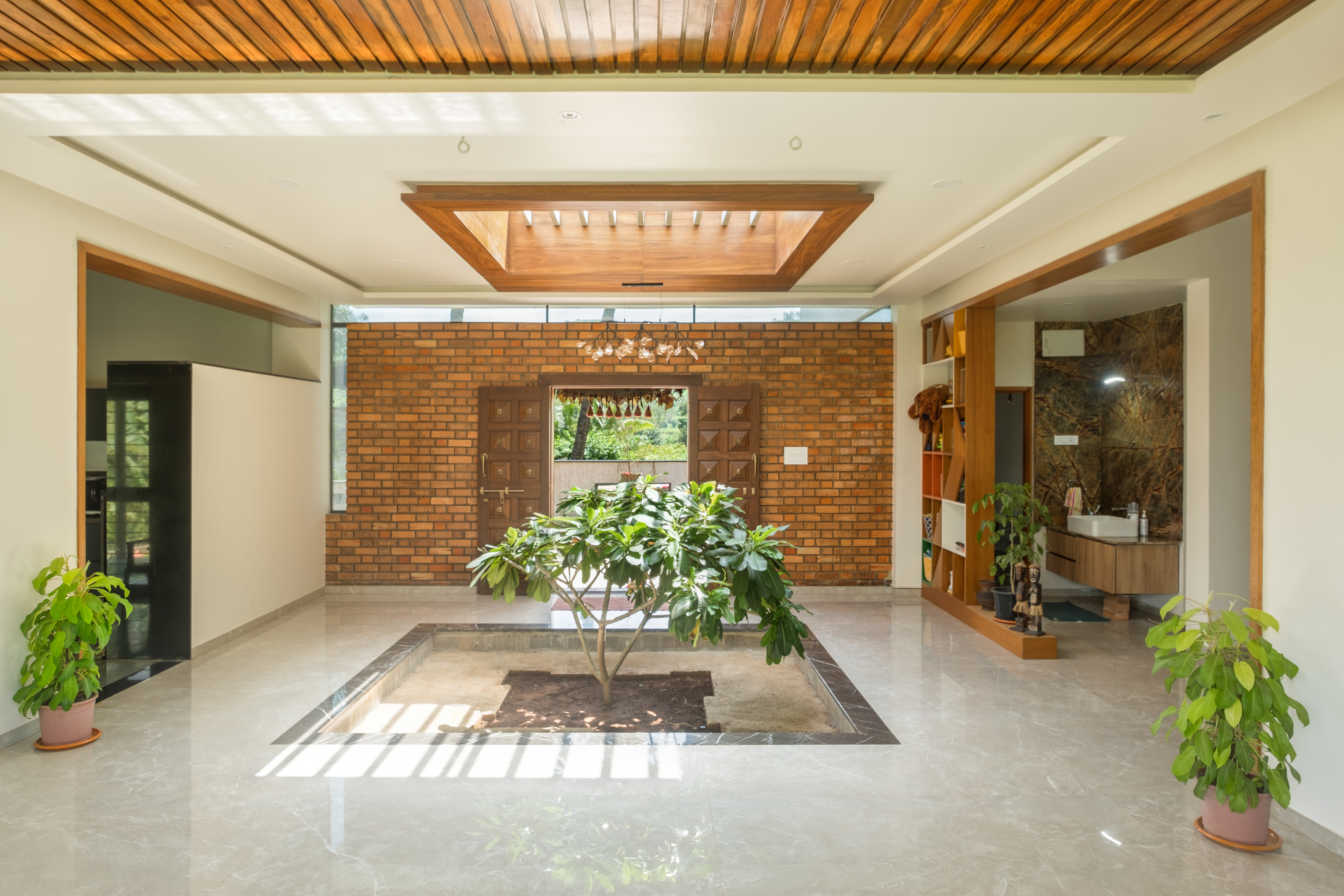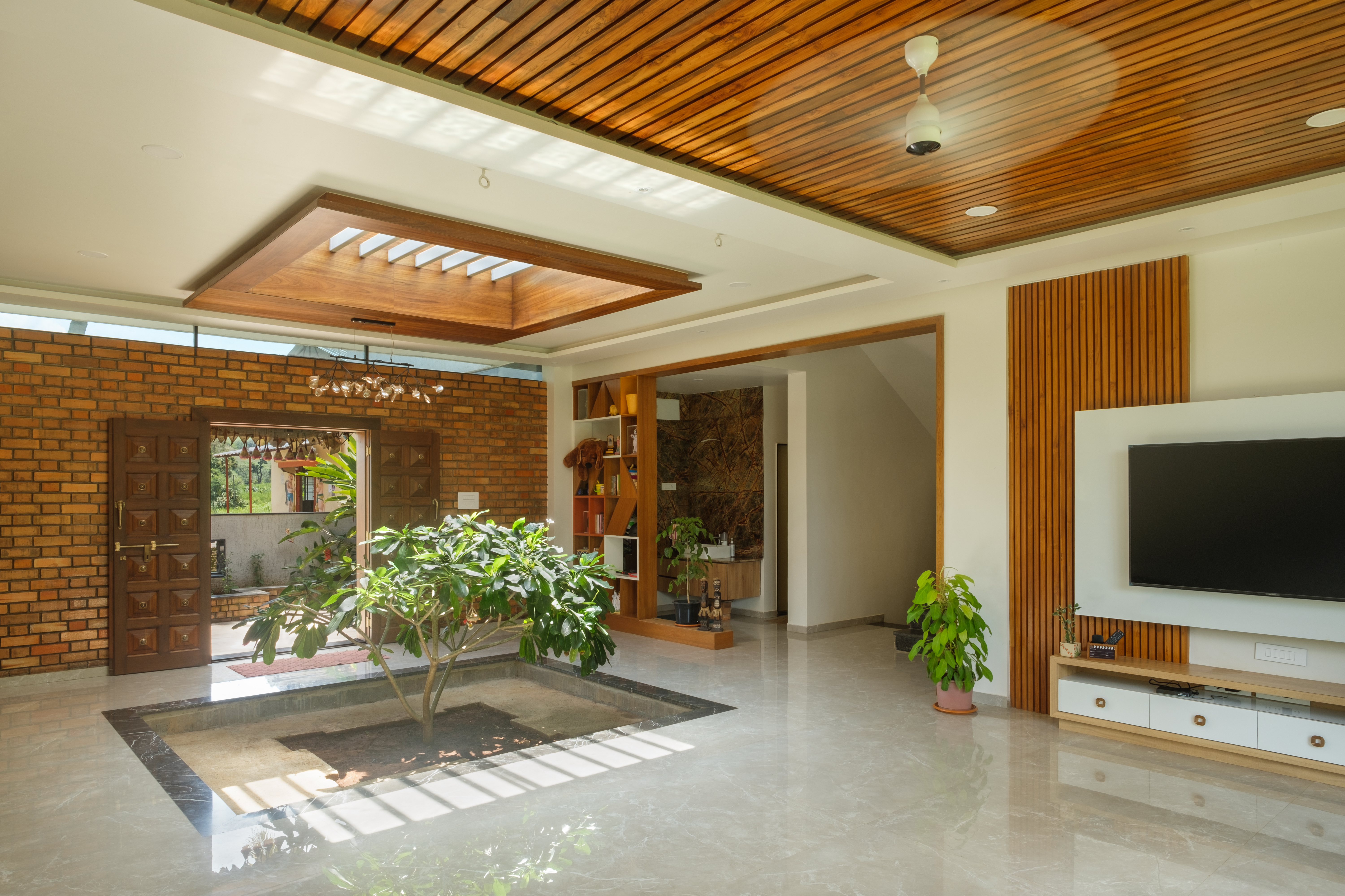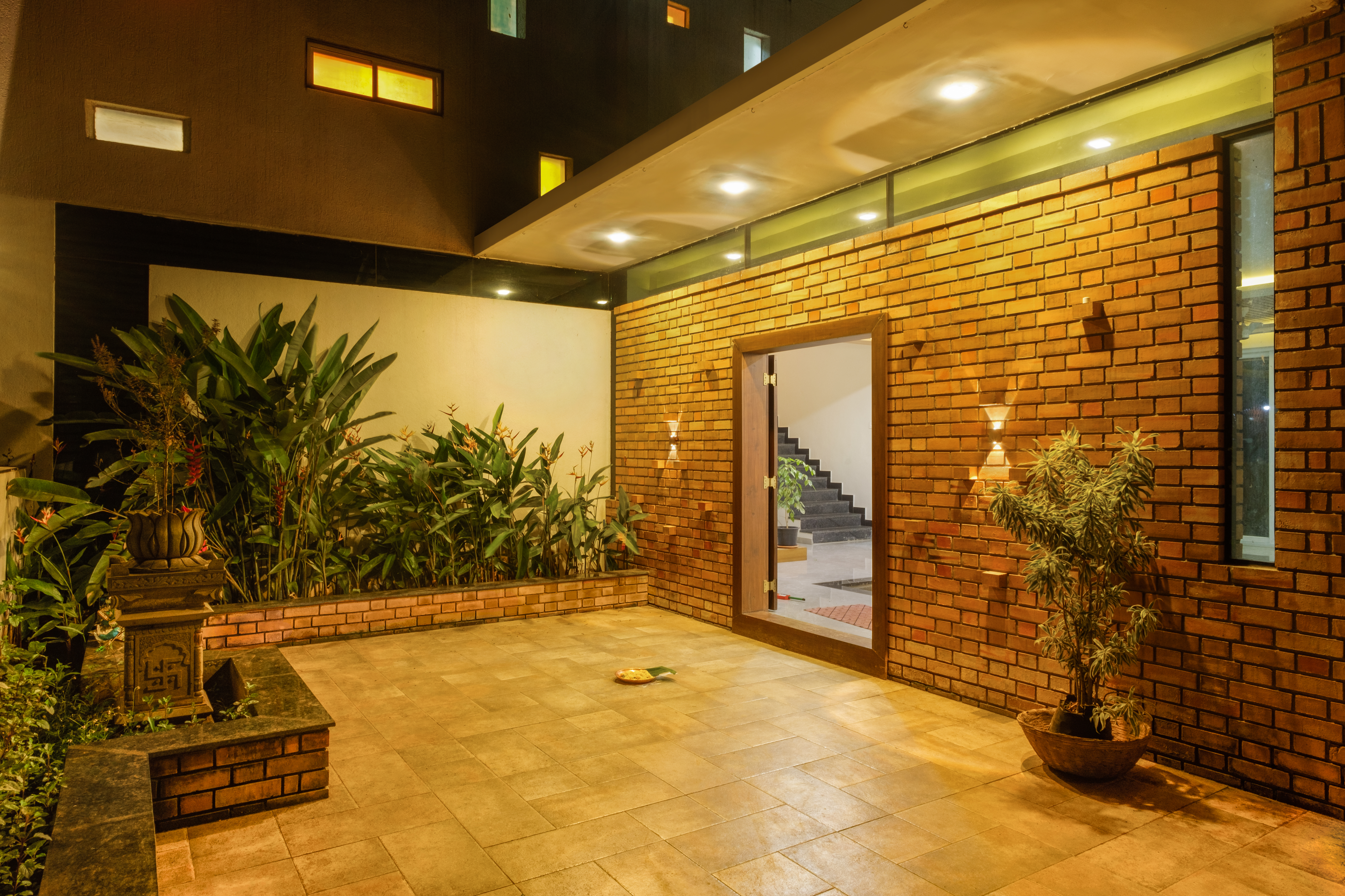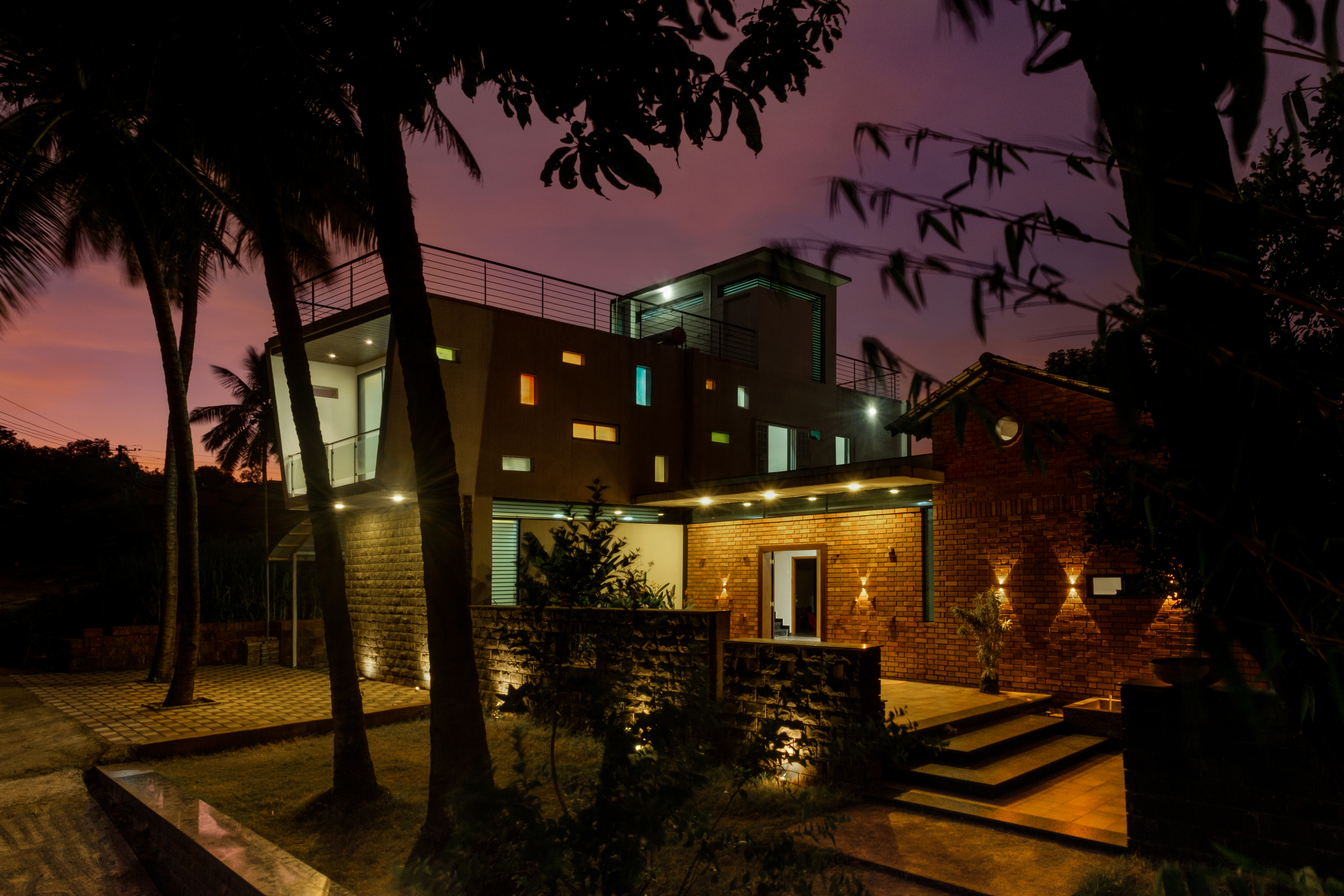 The Paritkar brothers approached the studio with a brief of a design of a house that seamlessly blends the modern and the traditional. The challenge was to merge the two varied architectural styles so that the two styles look unified.The main body of the house is divided into two parts modern and traditional and is fused centrally forming a courtyard with living space linking every function together the ground floor consists of bedrooms, a kitchen, a living room, and a courtyard whereas the upper floor consists of 2 bedrooms and a terrace with a glass roof for the courtyard maintaining the transparency and vision from the upper floor to the lower floor. This open space presents freedom to move, play, gather, and celebrate. Homes that have stood the test of time for multiple generations in a village are the ones that follow architecturally sensitive values in some fundamental ways.